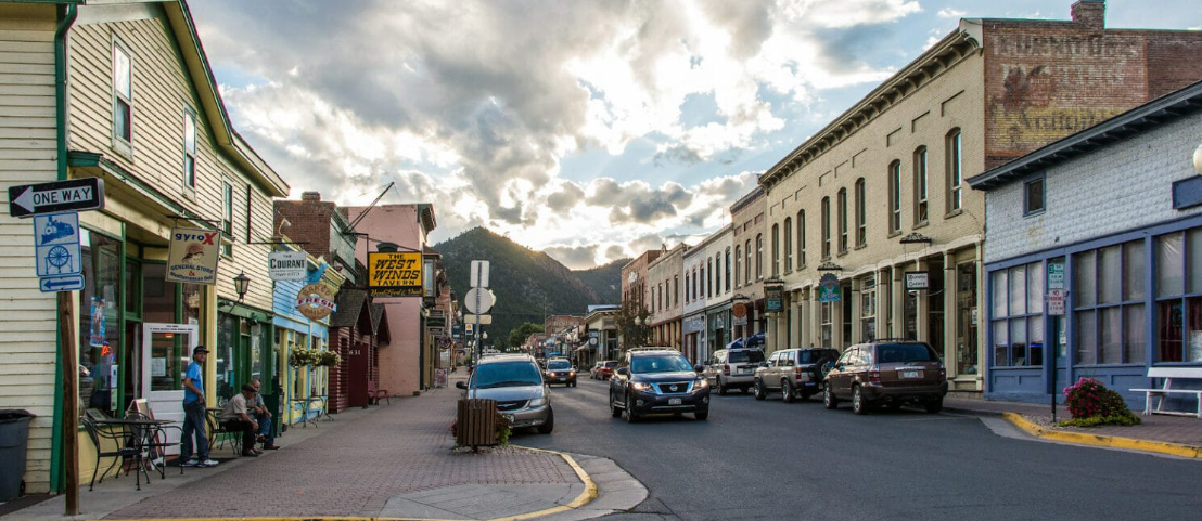 Downtown Idaho Springs with the history buildings